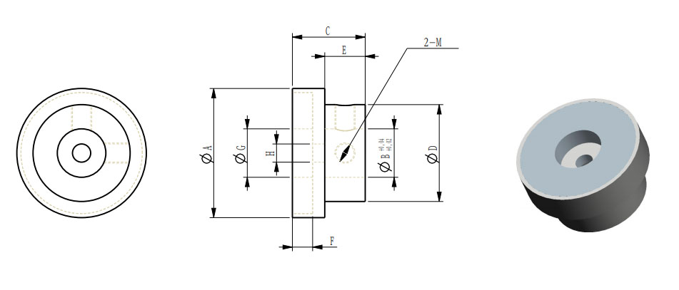 | 型號(hào) | 外徑A | 可選內(nèi)孔B | 高度C | D | E | F | G | H | M | 傳動(dòng)扭力N.m | |